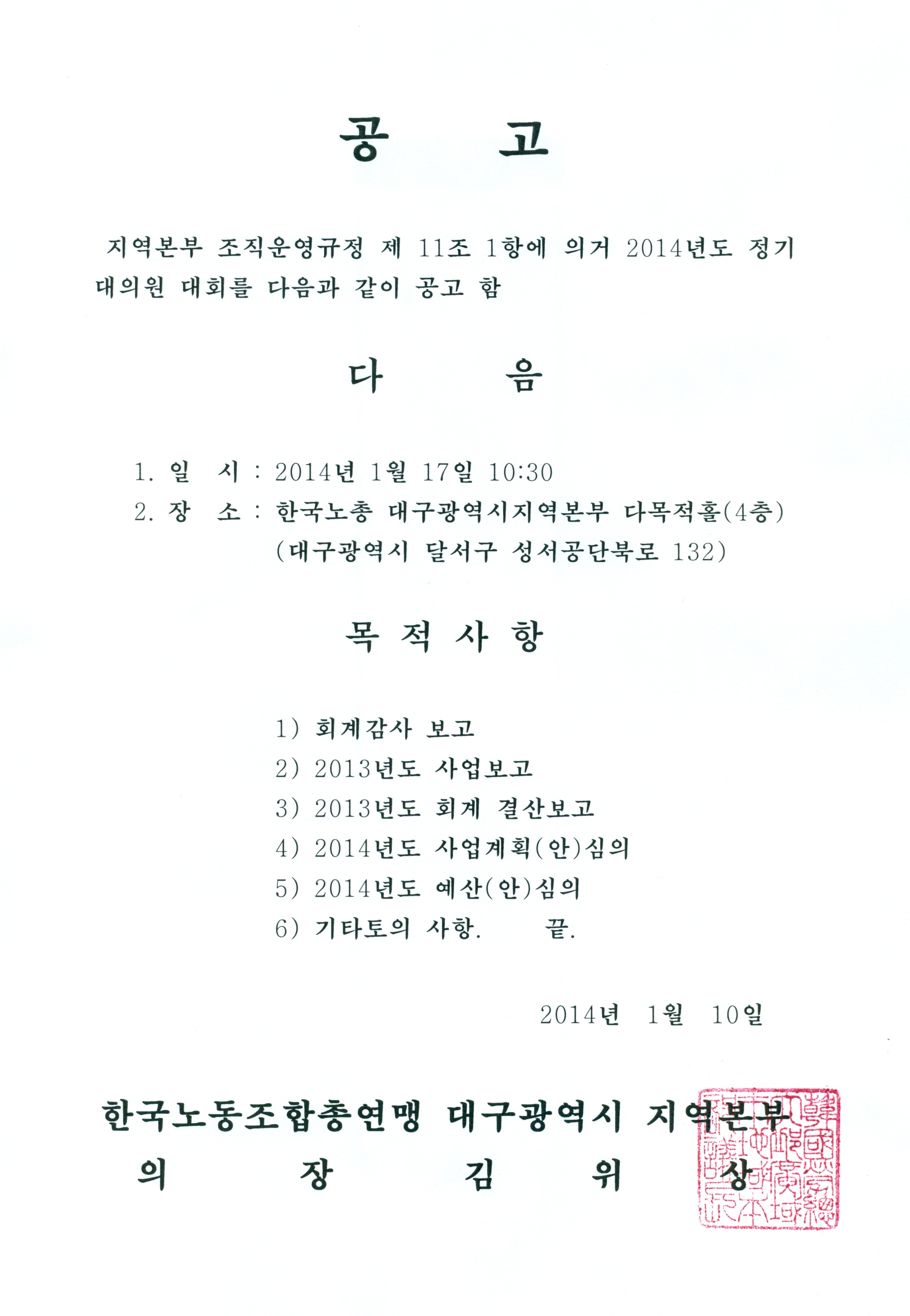 2014³âµµ Á¤±â´ëÀÇ¿ø ´ëȸ °ø°í